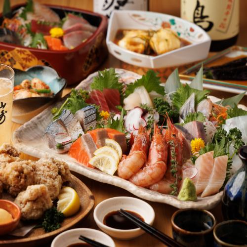 コースは全て京風和食を彷彿とさせる創作和食の前菜に始まり、こだわりの直送鮮魚を日替わりにてご提供!他にも蟹やいくら、海老などの海鮮食材から、系列店のメイン料理である牛タンや地鶏まで、幅広い食材をご堪能いただけます。職人技の光るお寿司や天ぷらも絶品で、鍋料理も種類豊富!+800円でプレミアム飲み放題へ変更可能♪完全個室も◎